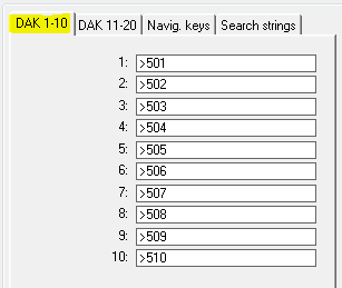 Here DAK 91-100 is shown configured from the DAK table at physical #510