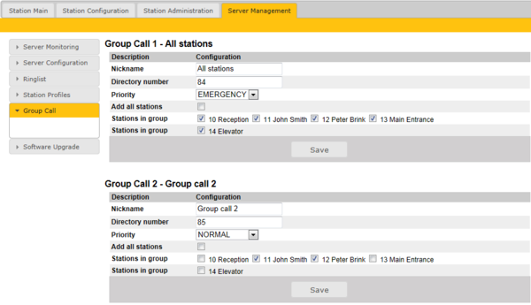 - Save: There is a Save button for each group call. Remember to press Save before you make changes to the next group call.