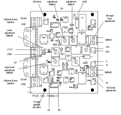- 2 Volume adjustment potentiometers, one for each loudspeaker.