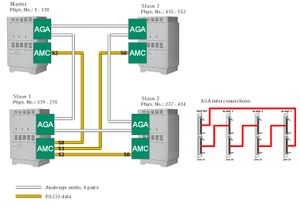 Even if old style using AGA/AE1 is used for inter-module audio, it is highly recommended to use TCP/IP for data-signalling to the slaves, instead of RS232. (To set up the data connection, follow same programming as in the preceding VoIP section, except there is no need for a license.)