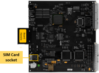 Install the STIC card by inserting it into the SIM Card socket of the AMC-IP board, as indicated in the picture to the right.