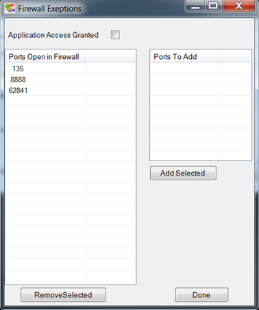 In the UA Server Configuration Helper main screen, click on Firewall Exceptions. Make certain that port 62841 is in the column Ports Open in Firewall.