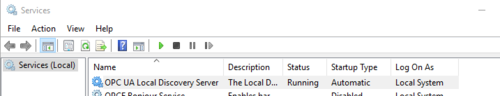 Check in the services dialog that OPC UA Local Discovery Server is running and will automatically start at system reboot.