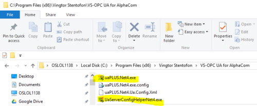 In File explorere, navigate to the installation directory C:\Program Files (x86)\Vingtor Stentofon\VS-OPC UA for AlphaCom
