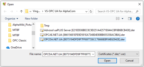 - Navigate to C:\Program Files (x86)\Vingtor Stentofon\VS-OPC UA for AlphaCom