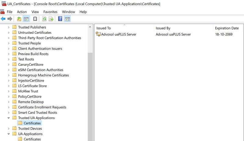 UA Certificates Store