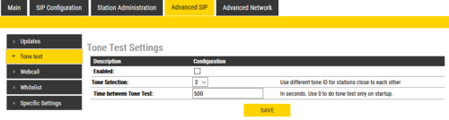 - Time between Tone Test: This parameter decides how often the tone test should be repeated. Use 0 to do tone test only on startup.