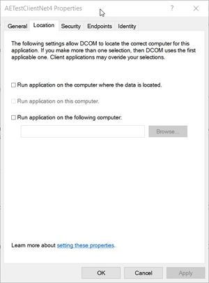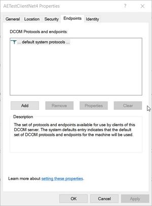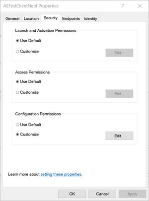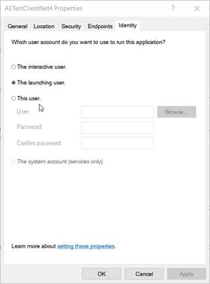 Check the test client AETestClientNet4. Right click and select “Properties”.