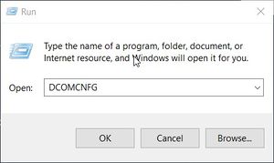 Right click Start and select “Run” and enter “DCOMCNFG”.