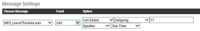 - Set Option to ‘Call Ended’/’Outgoing’/’Speaker’/’One Time’ and assign it a directory number, in the example below this is 77
