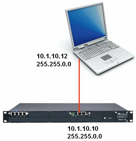 - Before the PC can access to the Mediant 600, the IP address of the PC must be changed to match the same subnet (e.g 10.1.10.11)