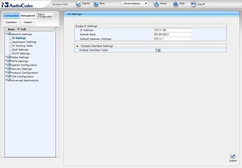 - Without resetting or powering off the device, you need to log on to the Gateway using its new IP address in order to Burn the new IP address to flash: