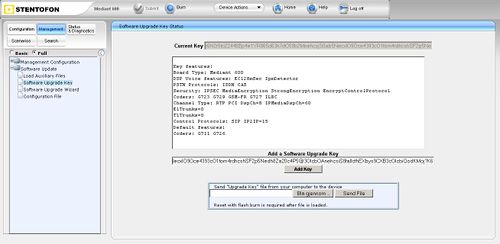 - In the "Software Upgrade Key Status" page (Management tab -> Software Update menu -> Software Upgrade Key page):