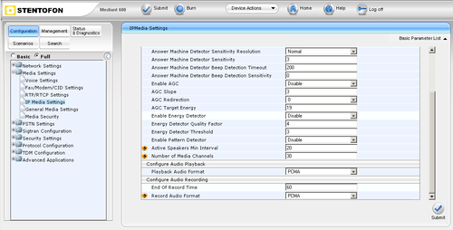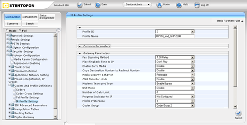 The following highlighted points deviate from the standard MP114/118 configuration and are special for the SIP2SIP transcoding with AlphaCom using AudioCodes Mediant 600: