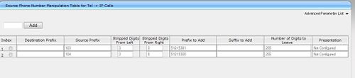 - Manipulation Table for Outgoing Calls