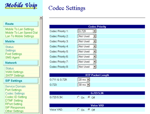 - Note: If SIP Provider supports another Codec, please choose from the drop down list.