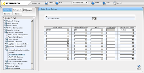 - In the "Coder Group Settings" page (Configuration tab -> Protocol Configuration menu -> Coders And Profile Definitions submenu -> Coder Group Settings page):