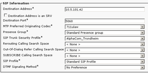 The following highlighted points deviate from the standard CUCM configuration and are special for the SIP2SIP transcoding with AlphaCom using AudioCodes Mediant 600: