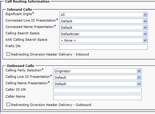 - Calling Search Space: DefaultUser