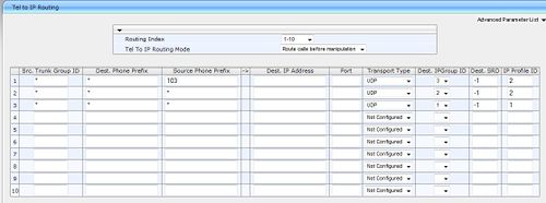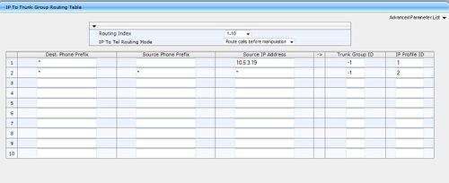 - Source IP Groupe ID : enter "2" to assign these calls to the IP Group pertaining to the SIP Server