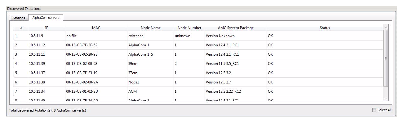 The Status column will show OK for newly discovered stations or Already exists for stations that have been discovered before and are already part of the project. Both statuses indicate that the station is functioning and responding to VS-IMT. For other statuses, see VS-IMT Troubleshooting & Technical Background.