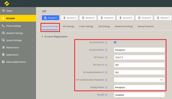 • The Directory number as defined in AlphaPro (Typically referred to as SIP User ID, ): Often the Directory Number also must be entered as SIP Authentication ID.