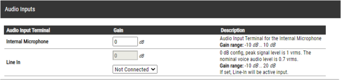 • Pure Line In+GPIO: When the device is in idle play audio from the Line IN input if Input 6 is active. When the device is in a call, play audio from the VoIP signal