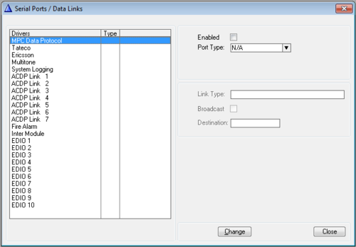 - Data [ACDP Link]: The ACDP (AlphaCom Data Protocol) link used for communication with the device. The actual ACDP link is configured in the Serial Ports setup.
