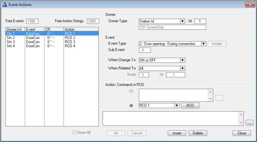 - All: The event is carried out with no check on the related number, i.e. works for all stations. Many events have no related number, and in that case the fields are not available