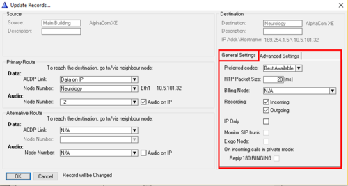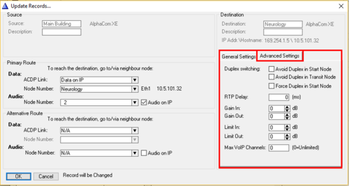 - When creating NetRouting to an AlphaCom node (AlphaNet), "20ms" is default. Normally you should not change this setting.
