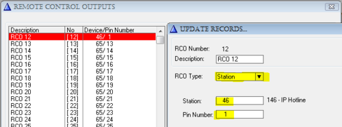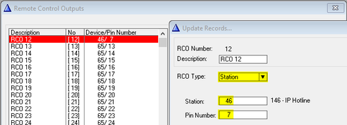 To map the relay of the IP Station to a logical RCO, select Exchange & System -> RCO. Pick a free RCO, select Change and set the RCO Type = Station, enter the physical number of the IP Station, and set pin number = 1.