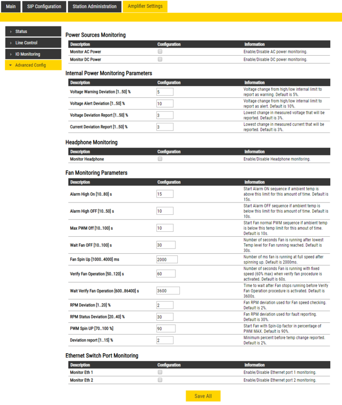 This article describes the configuration settings available for the ENA IP Network Amplifier in SIP mode. The ENA Amplifiers are configured through their web interface.