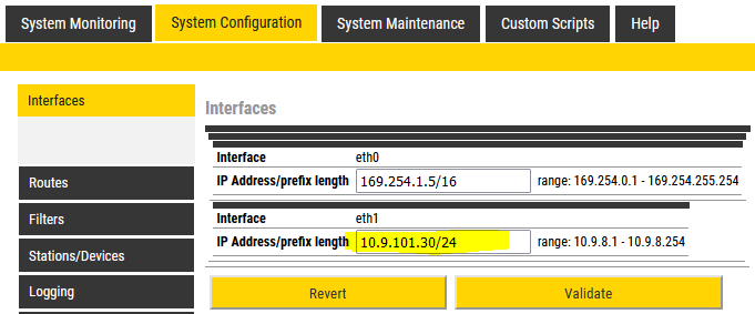 - Connect to: Enter the IP address of Eth0 and Eth1, and select which network interface to use for communication with other nodes.