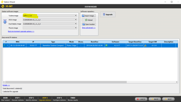 - When the discovery process is finished, select the stations to be upgraded from the list by checking the Select flag
