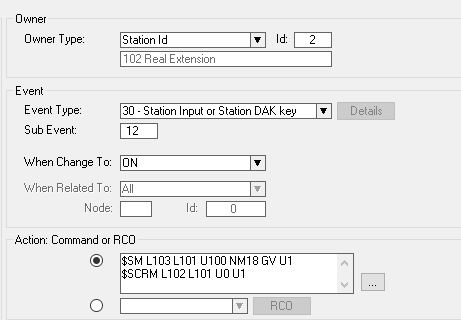 Add an event for the Real Extension to accept an Input to create a Call Request from the Virtual Extension and turn on Call Requester Mode on the Real Extension. In this way, the Real Extension will ring and the call LED will flash. Here, we are using Input 2 on the rear of the Turbine to set up a call from Virtual Extension 103 to Control Room 101