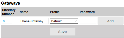Note: Directory Number 0 is optional as you can use any number to make external calls through the Gateway
