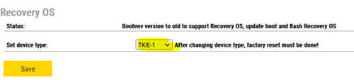 If the settings for Keyboard Type is missing in the web interface (which might happen after e.g. a factory default after upgrading to firmware 7.x), the settings can be exposed again by changing the device type to something else than TFIE, and then back again to the original device type.
