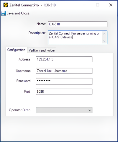 - Enter the necessary connection details (e.g., IP address, port number, credentials) and save the configuration.