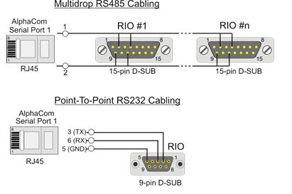 - A RS485 multidrop with local power, then a separate GND reference wire is necessary. With the RS485 it is possible to connect up to ten RIO's to the same bus. This is indicated with the continuing bus, the next RIO will be connected the same way as the one shown.