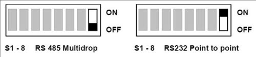 Note that if you select SW1:8 as POINT-TO-POINT, the PC will be connected to the RS 232 port where the AlphaCom is supposed to be. If the RIO receives no ISO1745 data protocol activity on this port within 15 seconds, it will print a message anyway.