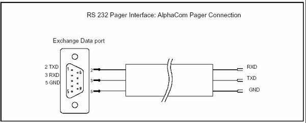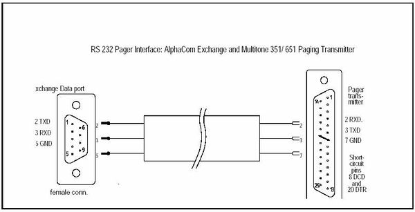 Note that the RS 232 communication cable between the AlphaCom exchange and the paging system is not included in standard deliveries.
