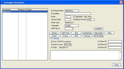 | Exchange name: | The name was choosen when the database was created. The name will be sent and stored in the AlphaCom exchange. The name can be edited from this window. |