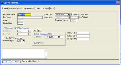 | Node Type: | Reflects the choice you made when you created the exchange. It is possible to change the node type from AlphaCom to AlphaCom E or vice versa after the database has been created. |