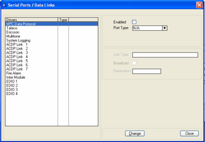 | Data [ACDP Link]: | Lists the serial ports numbers with the default drivers for the ports. Overview of the serial ports settings - see page 187. |