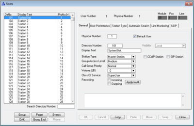 From the Users & Stations window you can modify the properties of intercom stations.