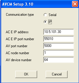 - Start the 'AVCMSetup' program (Windows XP: Start-> All Programs -> AlphaVision: AVCMSetup). Set: