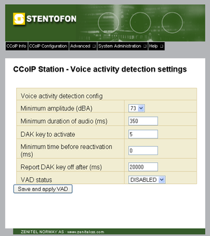 The Voice Activity Detection configuration is done from the IP-station web interface at Advanced --> VAD The following settings are possible to configure: