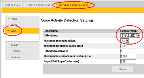 • The VAD is working only when the station is in idle. It will not work if the Station is for example in conversation or in conference. (Station software 2.2.3.1)