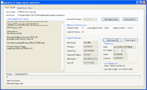 AlphaImageUpgrade is used for upgrading image file on AMC boards running software version 10. The image files has the extension .bin. This application is described in a separate article.