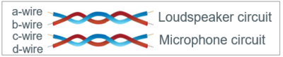 The four wires are called a-,b-, c- and d-wires. a-b-wires are "transmit" and cd-wires are "receive".